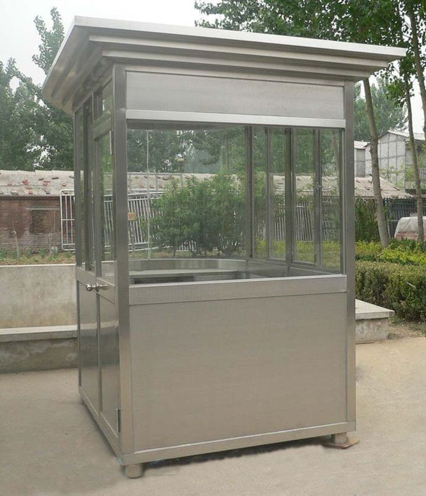 此材质岗亭为豪华不锈钢岗亭,内设电器、照明、岗亭表面经特殊工艺处理,精工制作而成,款型别致,品种繁多 4 岗亭电器 节能灯,灯开关、五孔电源插座、空调专用插座一组、配电箱一组(内含漏电开关、总开关)等。